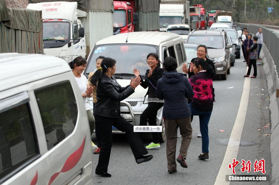 楚大高速拥堵 大叔大妈公路“斗舞”