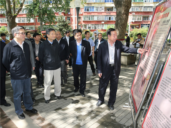 在西安市红专南路社区,调研组考察了社区的一站式服务大厅,听取了红砖南路社区公共文化服务设施、人员配备、活动情况等介绍。“志愿者服务”是红砖南路社区公共文化服务建设的亮点,社区还在主要道路旁设置宣传展板,定期宣传热心志愿者和好人好事。罗富和说,志愿者参与公共文化服务,是很重要的可复制推广的经验。