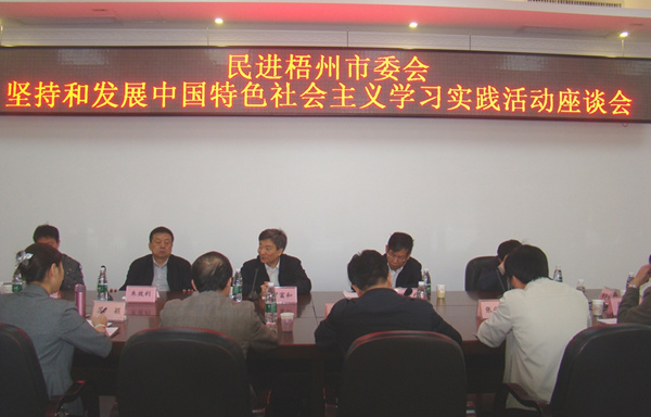 4月15日至16日,民进中央常务副主席罗富和赴学习实践活动联系点梧州市调研座谈。图为罗富和参加梧州市委会学习实践活动座谈会。