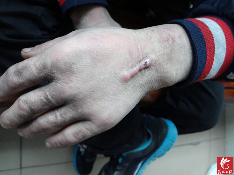 被发现男子手上的伤疤。