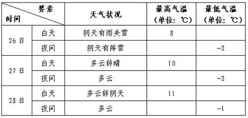 定日至珠峰沿线:26日白天至27日凌晨,多云有雨夹雪,高海拔路段有小到中雪。
