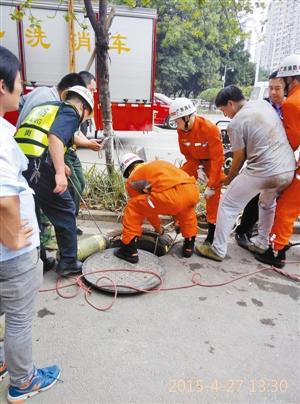 消防员现场探测,出事检查井深约6米,井内水深1米多。林宇彬指挥消防员将空气呼气器吊入井内。“第一时间就要往井内输氧,窒息救援时间就是几分钟的事,情况太紧急了。”林宇彬说。