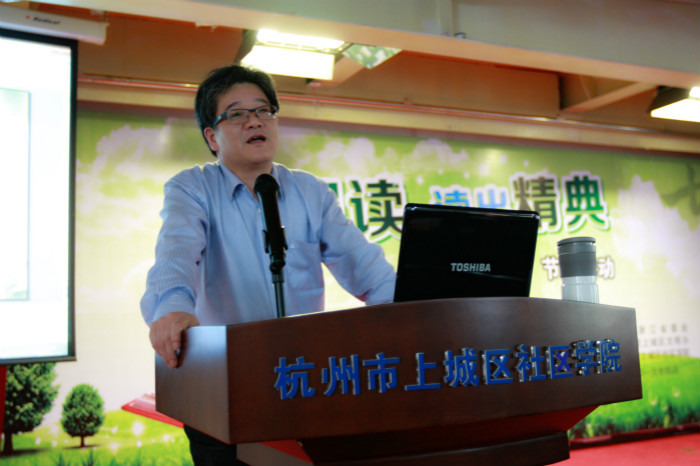 活动邀请了浙江教育出版社副总编、编审,民盟省直联第一总支副主委邱连根作了《该怎样帮助孩子读好书》的专题讲座。他长期与书籍及读者打交道,在百科类、中小学教材教辅、管理学等方面策划编辑了一系列优秀图书。他从发展心理学、新课程改革等方面介绍了如何培养孩子阅读兴趣、养成阅读习惯。他还推荐了一些经典书籍,并引用了著名作家张抗抗的话,”希望杭城的桂花树下,少一些牌局和麻将,多一些读书的场景“,鼓励大家多读书,营造全民阅读氛围,建设书香社会。深入浅出、通俗易懂的讲座,让居民们收获了知识,了解了读书的重要性,居民们纷纷表示邱老师的讲座针对性强,一定要付诸行动,和家人一起读好书。