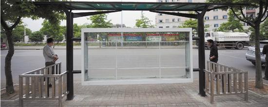 公交站台三面被围