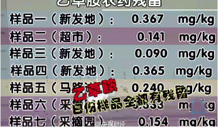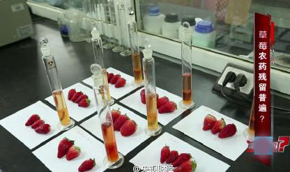 报道称,央视财经记者在北京新发地农产品批发市场、美廉美超市、昌平采摘园及路边草莓摊,购买了8份草莓样品,送到北京农学院进行检测。初步检测结果显示,百菌清含量最高的是在新发地购买的4号草莓样品;乙草胺最高的是1号样品,残留量为0.367毫克每公斤,如果参照欧盟标准0.05毫克每公斤计算,该样品超标7倍多。节目引用专家观点称,如果长期摄入乙草胺含量较高的食物,有可能造成中毒,甚至具有致癌性。