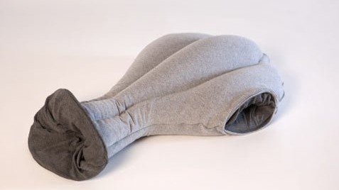这款枕头被取名为"鸵鸟枕",灵感来源于鸵鸟喜欢把头埋入沙堆里的习惯动作。"鸵鸟枕"全部采用可水洗织物制成,有多种颜色可选。它的外形似大兜帽,几乎可以完全围住头和脖子,仅露出鼻子和嘴巴呼吸。它还有两个边孔,使用者小憩时可以把手伸进去,完全隔绝外界干扰,从而在私密又舒适的小空间里美美地打个盹儿。舒服又有创意,难怪走红了。