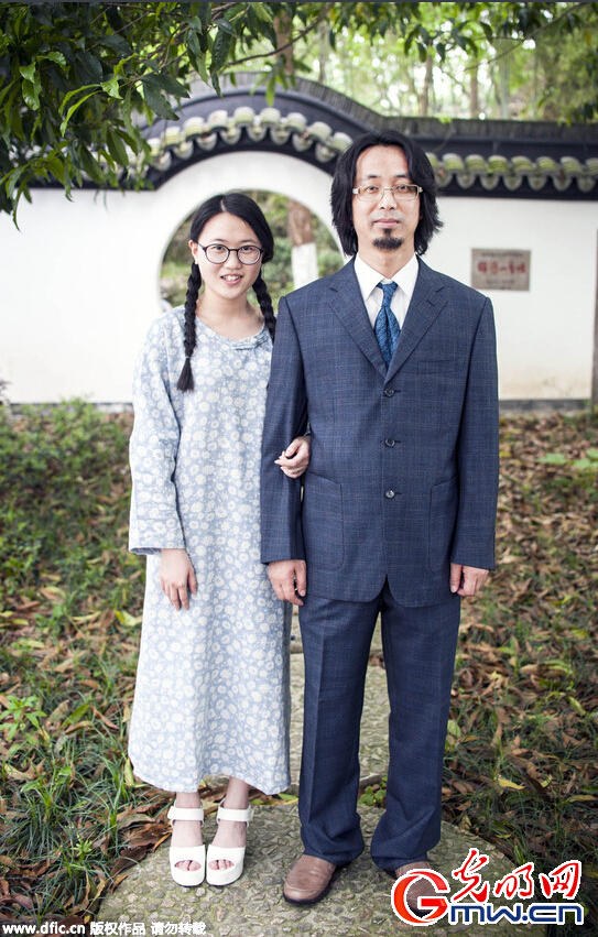 中学生改良旗袍毕业照 似床单裹身