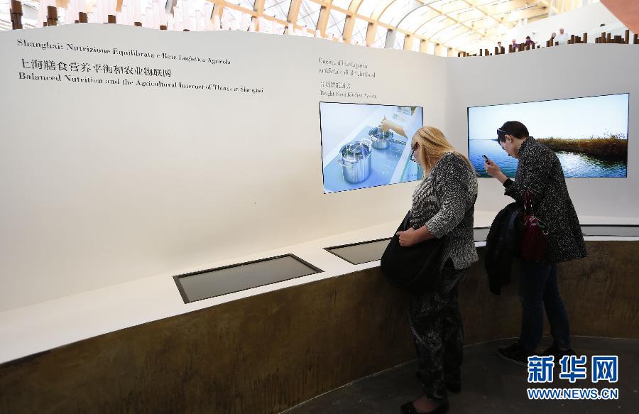 5月2日,在意大利米兰世博会中国馆,参观者体验“上海膳食营养平衡和农业物联网”与“光明智能厨房”。米兰世博会中国馆是中式风格与现代设计的完美结合,受到参观者的广泛关注。 新华社记者叶平凡摄