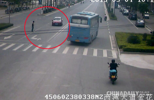5月4日,游客梁先生开车经过广西防城港港口区西湾路十字路口时,遭遇一名男子碰瓷。在交警到达现场取证时,现场目击的市民纷纷站出来为梁先生作证,还了梁先生一个清白。现场监控也记录下了男子碰瓷的全过程。