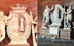 左右两图:大理石雕像受损前后对比