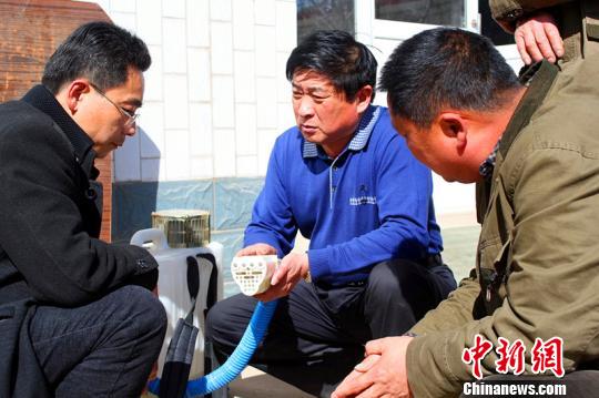 郭清辉与专家在研究改进采摘机?!≌排粝琛∩?/p>