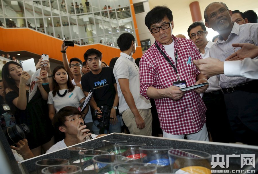 当地时间2015年5月7日,新加坡首都新加坡市,新加坡中央肃毒局委任国际影星成龙担任本地反毒品大使。成龙出席反毒品手机应用启动仪式。成龙表示,因为自己的家庭是毒品受害者,因此对担任反毒品大使更有责任感。