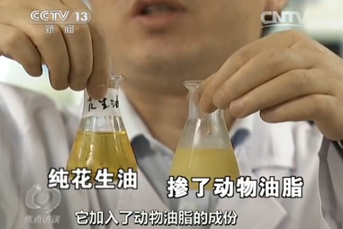 据报道,上述散装食用油销售情况已存在多年,店家主要以出售散装花生油为主,在媒体记者的调查中,共抽取了19个样品送检,仅3个为纯正花生油。其他油脂为添加了棕榈油、大豆油及其他动物类油脂的产品。