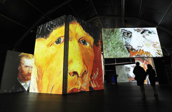 展厅内的多块大屏幕同时呈现梵高作品