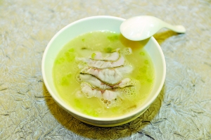 该汤肉嫩味鲜,口感独特,老少咸宜,除具有一定的强身功效外,还有助于暖胃和养胃,对患有胃病的人士很适合。对喝酒人士而言,还有相应的醒酒作用。