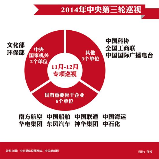 2014年中央第三轮巡视13个巡视对象将全部采用专项巡视。专项巡视是指主要针对特定事项或问题开展的巡视。制图:任芳