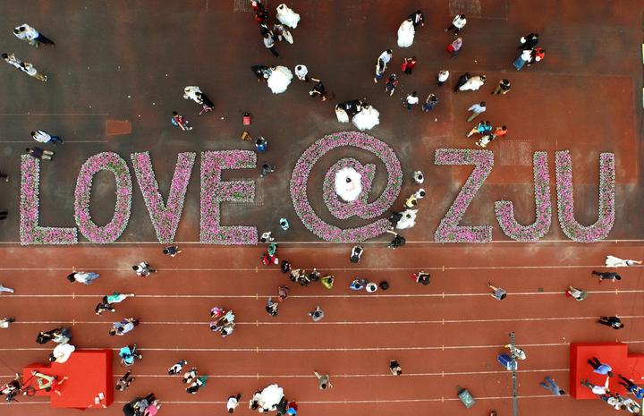 鲜花拼出“LOVE@ZJU”(缘定浙大)的字样