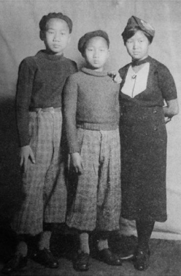 毛岸英(左)、毛岸青(中)与蔡和森女儿蔡妮(右)在莫斯科合影