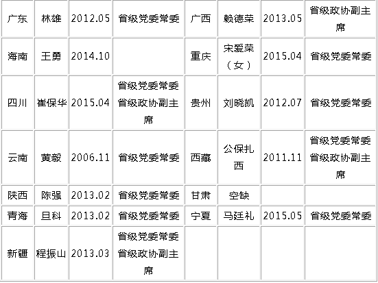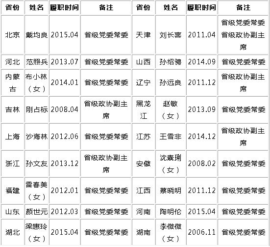 关键词:统战部部长 省委常委 31省