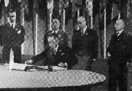 1945年6月26日,顾维钧正在代表中国在《联合国宪章》上签字,后立右二为董必武。