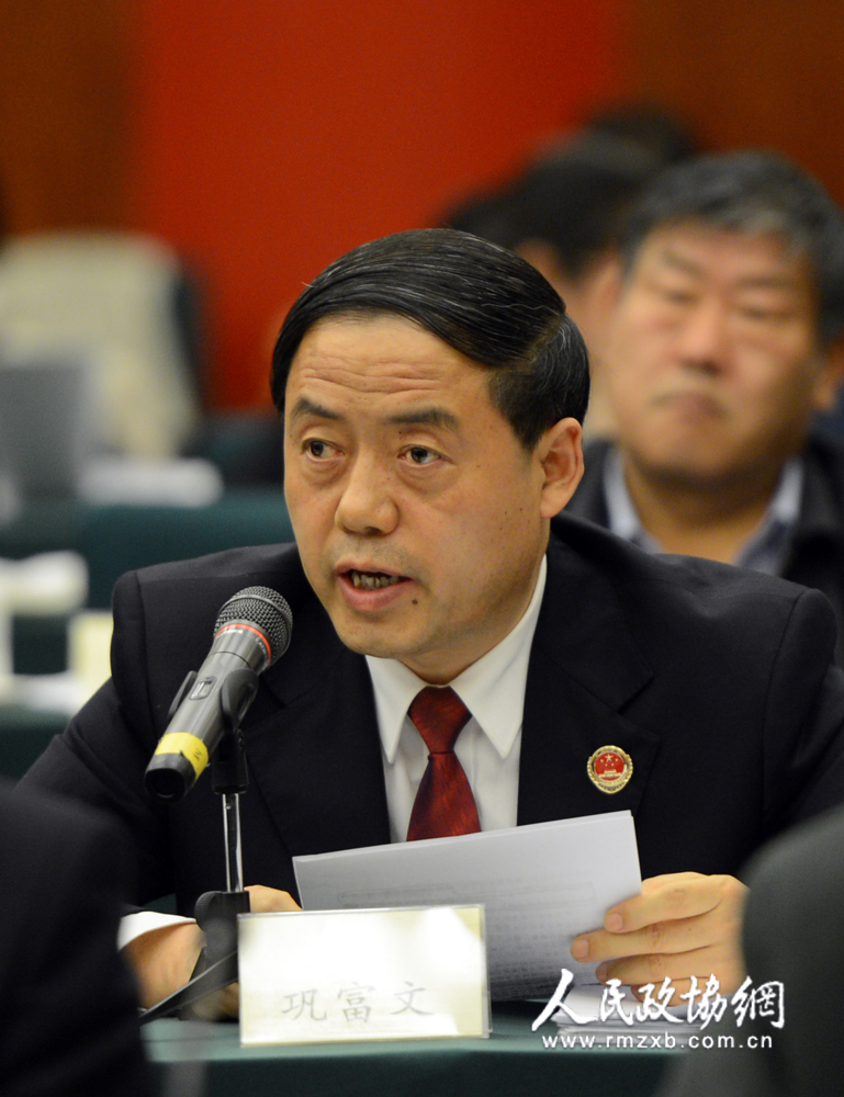 5月12日,全国政协在北京召开“推进人民法院司法体制改革”专题协商会。图为全国政协委员,陕西省人民检察院副检察长巩富文发言。人民政协报记者 姜贵东摄