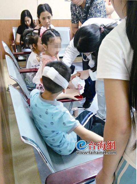 6个受伤的小朋友被送到海沧长庚医院,家长们闻讯都赶来了,医生对孩子们进行了初步检查。