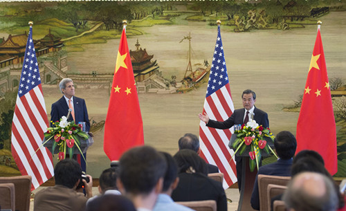 克里赞同王毅对两国关系的评价,表示美中关系是当今世界最有影响的双边关系??死锉硎?,今年对美中双边关系十分重要。习近平主席将应奥巴马总统邀请对美国进行国事访问,两国领导人将延续自安纳伯格庄园会晤和北京会晤以来的战略性沟通。美方愿与中方共同努力,确保访问成功并富有成果。