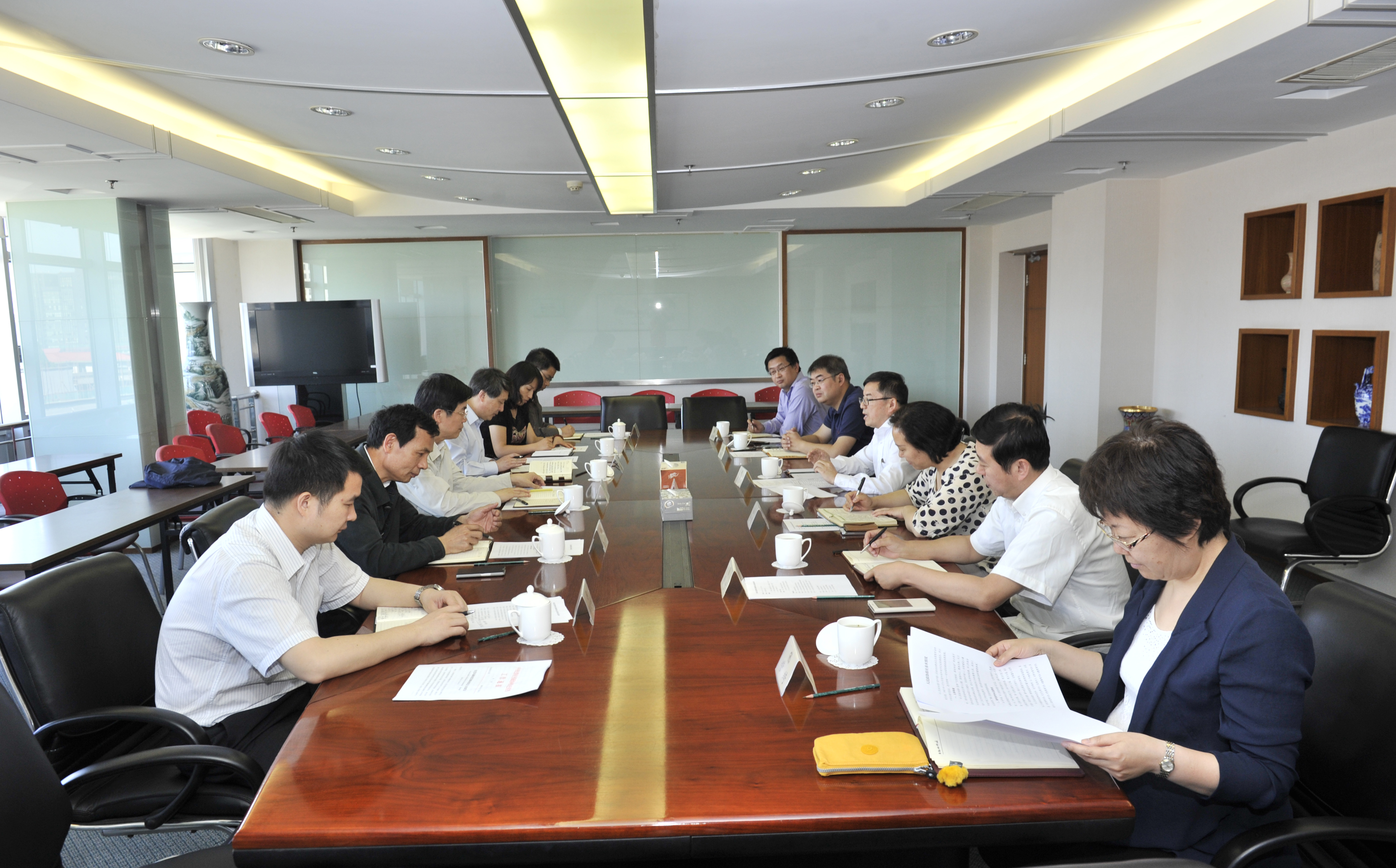 人民政协网讯 5月19日上午,全国政协副秘书长刘佳义,中央纪委驻全国政协机关纪检组组长周新建一行到人民政协报社,就党风廉政建设情况调研座谈。人民政协报社党组书记、总编辑周北川,党组副书记、社长李红梅,以及班子其他成员参加座谈。图为座谈会现场。