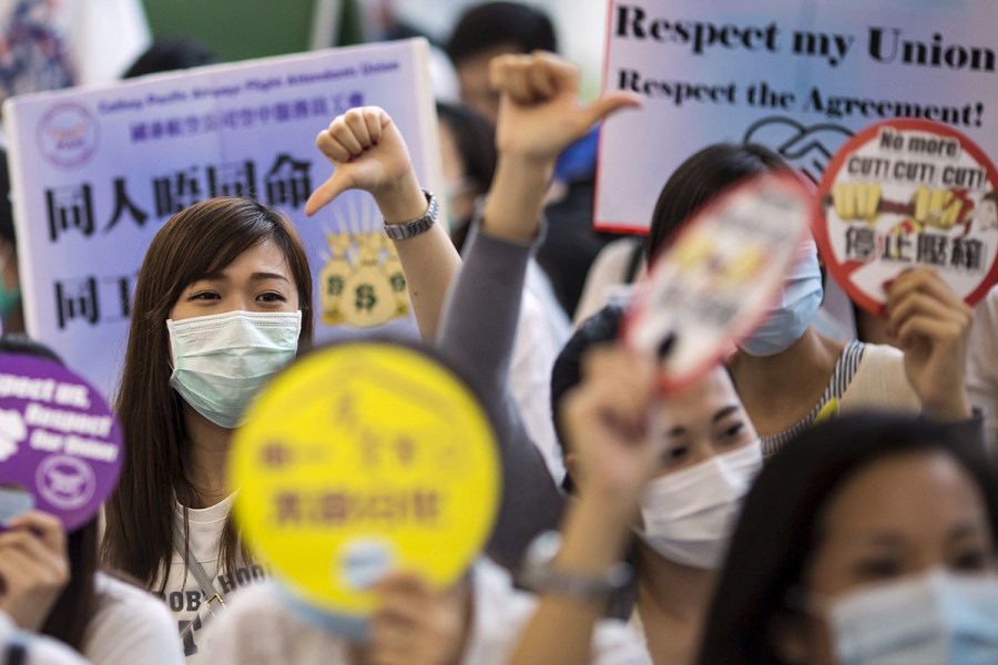 关键词:香港空姐静坐 香港国泰航空千名空姐静坐 抗议削减福利
