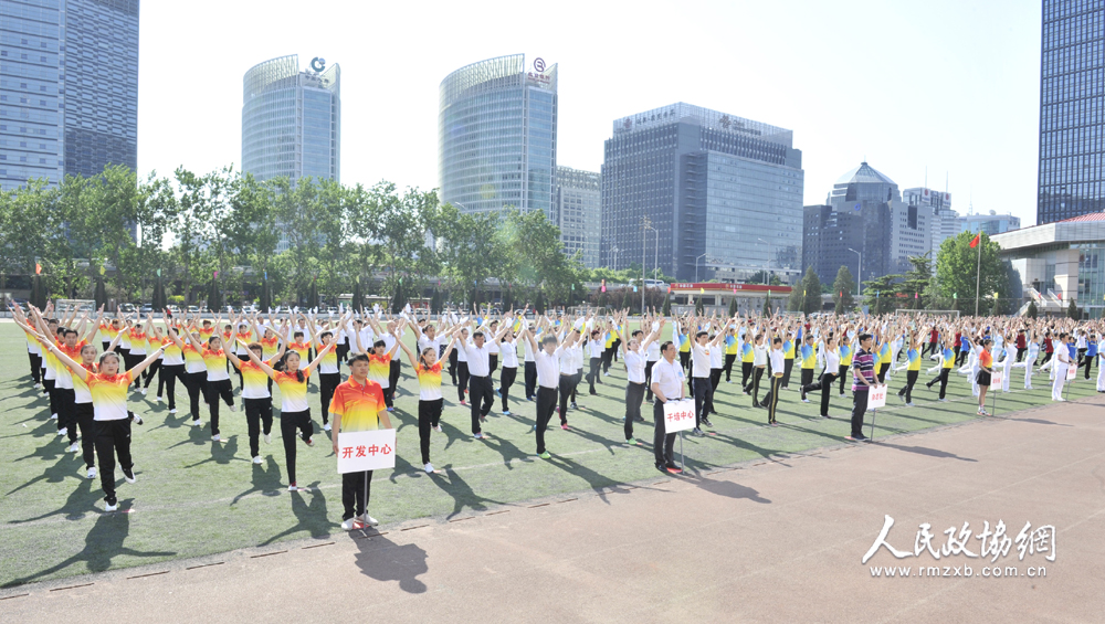 5月20日上午,全国政协机关第九届职工运动会在北京月坛体育场开幕。图为广播操表演。人民政协网记者 姜贵东摄