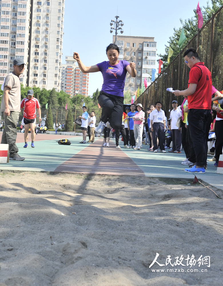 5月20日上午,全国政协机关第九届职工运动会在北京月坛体育场开幕。图为跳远比赛。人民政协网记者 姜贵东摄