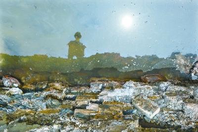 他又带记者来到刚挖开的一个地下水坑,只见2米深与地下水位持平处,红色石块露出了一排,上面还整齐地码着几排青砖。