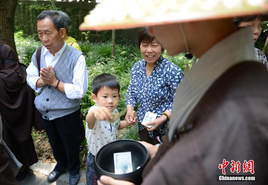 5月25日适逢农历四月初八释迦牟尼佛诞辰吉日,浙江杭州佛教界的630名头戴斗笠,身披衲衣,手持钵盂,脚踏芒鞋的行脚僧人,开始践行佛教传统,持钵接受信众的供养。托钵源自于佛教教主释迦牟尼在世时的制度,出家人必须要去托钵乞食,至今南传佛教国家(包括斯里兰卡、缅甸、泰国等)都遵循这一旧制。中新社发 李晨韵 摄