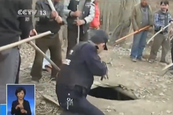 1名暴恐分子由于无法忍受饥饿和寒冷,从山里偷偷逃了出来??傻彼盏缴浇畔碌囊淮Υ遄?,就被警惕的村民发现。