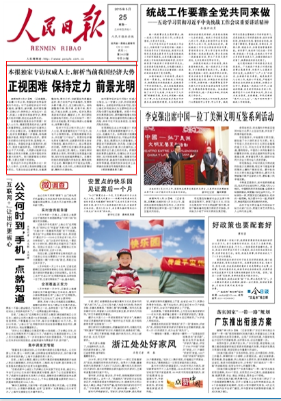 2015年5月25日的人民日报刊文《五问中国经济——权威人士谈当前经济形势》