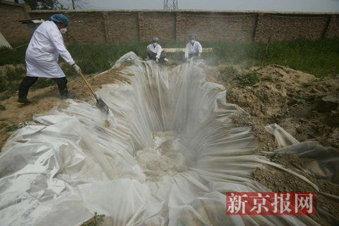 死后的羊驼被集中放置在一起,消毒后掩埋。