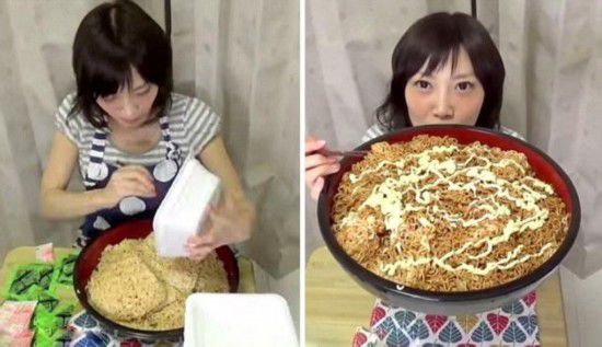 逆天!日本女子3分20秒吃完3.9公斤炒面(图)