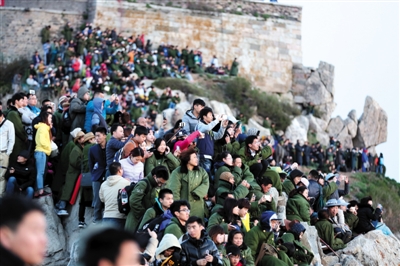 5月3日,山东泰安,游客云集泰山看日出。国家旅游局发布的“全国价格信得过景区承诺名单”中,不少知名5A级景区未上榜,泰山是其中一个。图/CFP