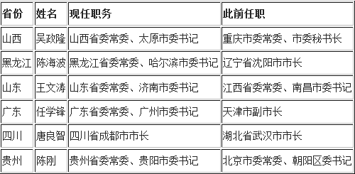 表1:十八大以后异地履新的省会城市书记市长