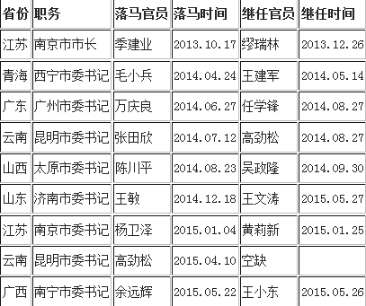 7省份省会城市9人落马 3名领导跨省补缺
