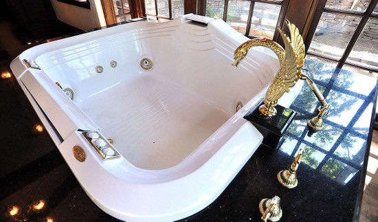 主卧中的巨大浴缸配有华丽的天鹅形水龙头,同时还可欣赏户外风景。