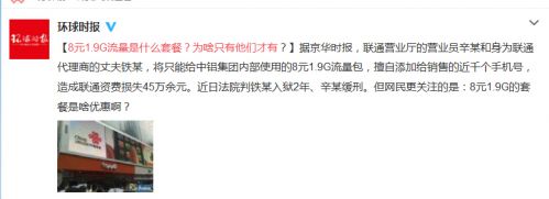 原标题:媒体追问联通员工盗流量案 8元1.9G是什么套餐