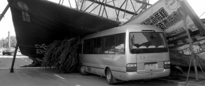 5月31日,长春市景阳广场,一个广告牌被大风吹倒,砸中一辆中巴车 吉友 李文道 摄