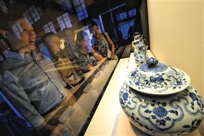 昨日,游客在故宫参观明代御窑瓷器。当日,“明代御窑瓷器——景德镇御窑遗址出土与故宫博物院藏传世洪武、永乐、宣德瓷器对比展”在北京故宫博物院斋宫和延禧宫开幕,共展出瓷器297件套。此次展览将江西景德镇御窑遗址出土修复后的当年被销毁的落选品和残次品与故宫博物院馆藏瓷器进行对比展出,实现了这些明代御用瓷器时隔数百年后从生产始端到使用终端的首次聚首。