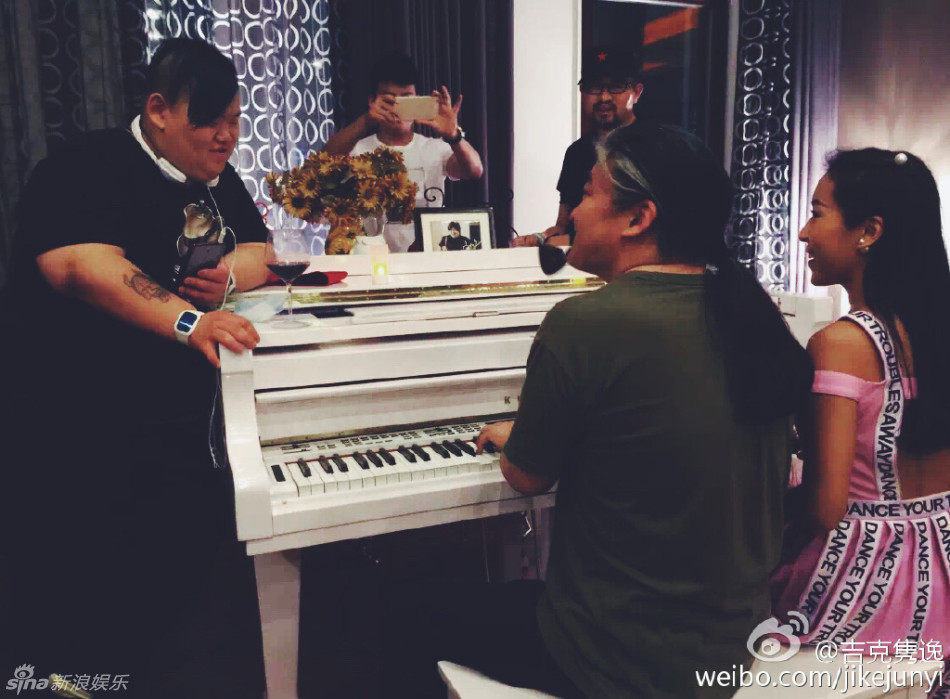 6月2日,歌手吉克隽逸通过微博晒出一组在刘欢家庆祝六一的照片,照片中,吉克隽逸等一行人不仅在刘欢家享受丰盛的美食,更和刘欢一起弹琴演奏,非?;独?。