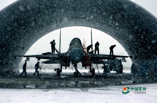 大雪的日子要为战鹰梳理“羽翼”。贲放 摄