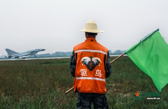 不是所有空军都驾驶战机飞翔在天空,比如地上的驱鸟兵,他们默默无闻?;ふ交鸱刹皇芊赡裼跋?。张鹏炎 摄