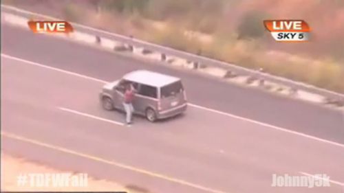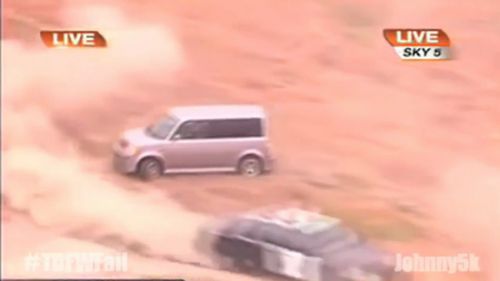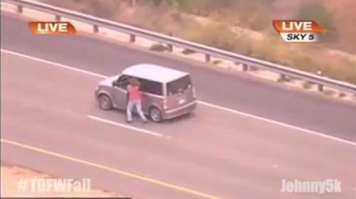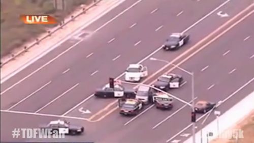 美国大妈公路与7警车飚车 360度掉头挑衅警察