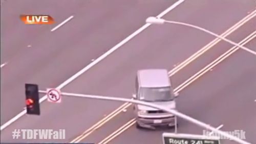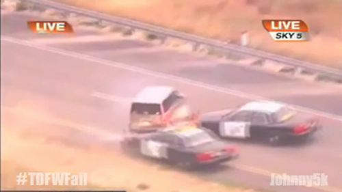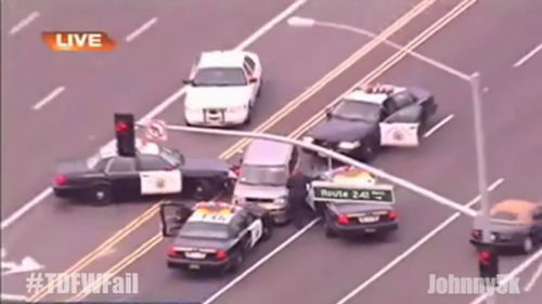 果然,被警察从右侧后方碰撞(美国警察会专门练习从侧后方撞击逃逸车辆的技术)
