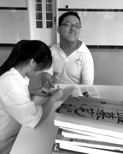 脑瘫考生马辽哲与同学一起复习。京华时报记者王海欣摄